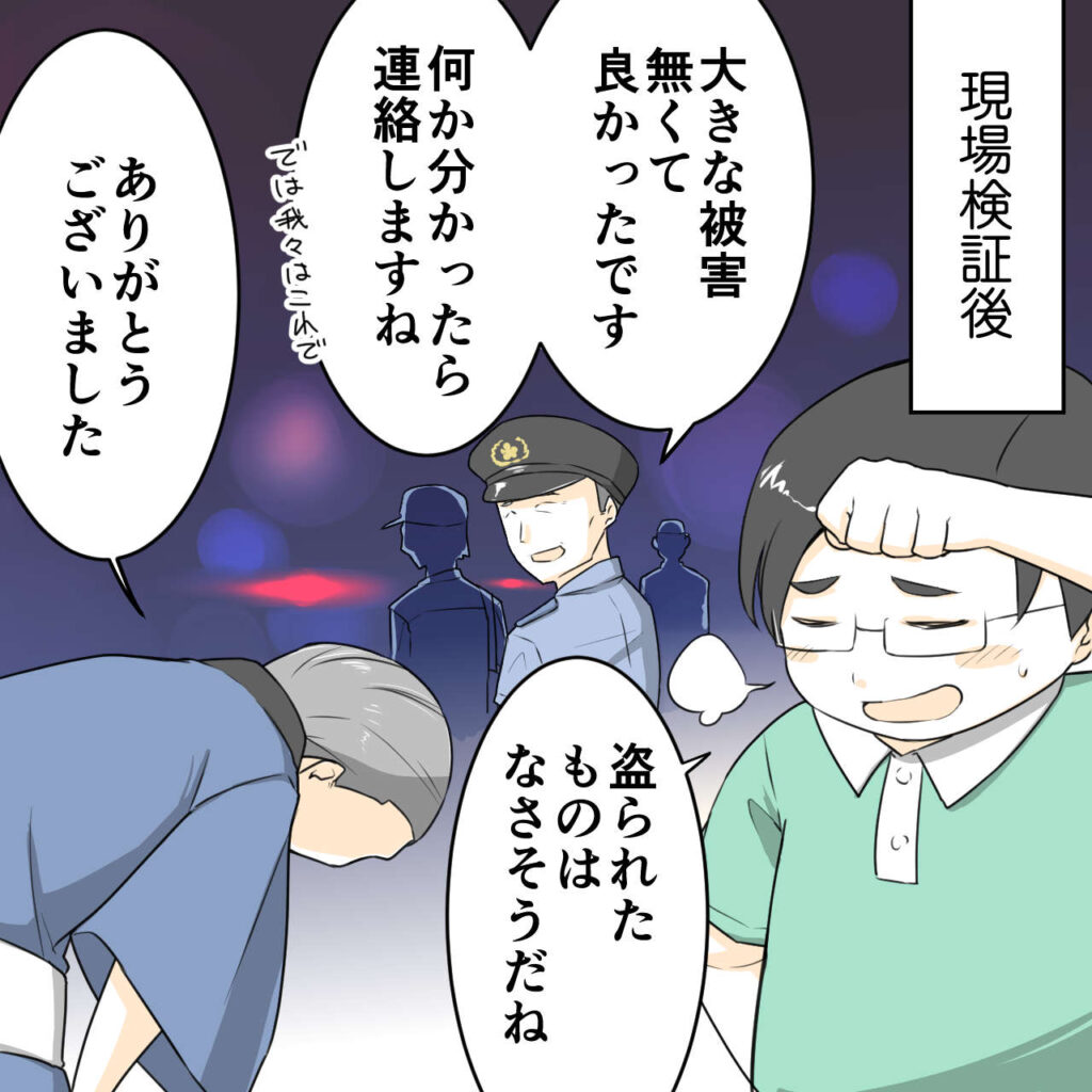 「盗られたものはなさそうだね」ひとまずホッとする夫に、「大きな被害がなくて良かったです。何かわかったら連絡しますね」と警察の方が言い、帰って行くのを「ありがとうございました」と父と夫が見送ってくれました。