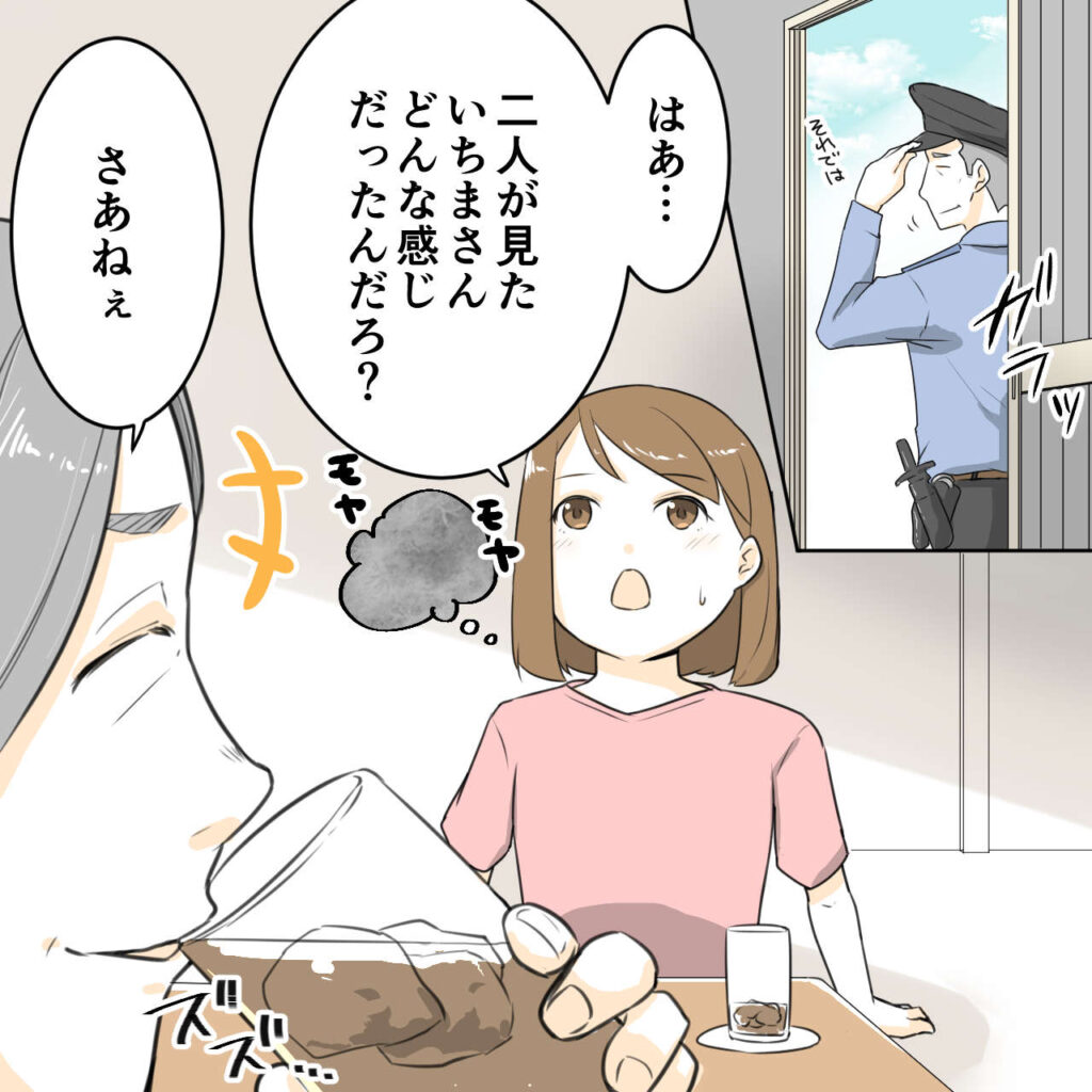 その後、「それでは」とおまわりさんが帰った後、「はぁ・・犯人が見たいちまさん、どんな感じだったんだろ?」と想像しながらモヤモヤする私に、お茶を飲みながら「さあねぇ」というお母さん、