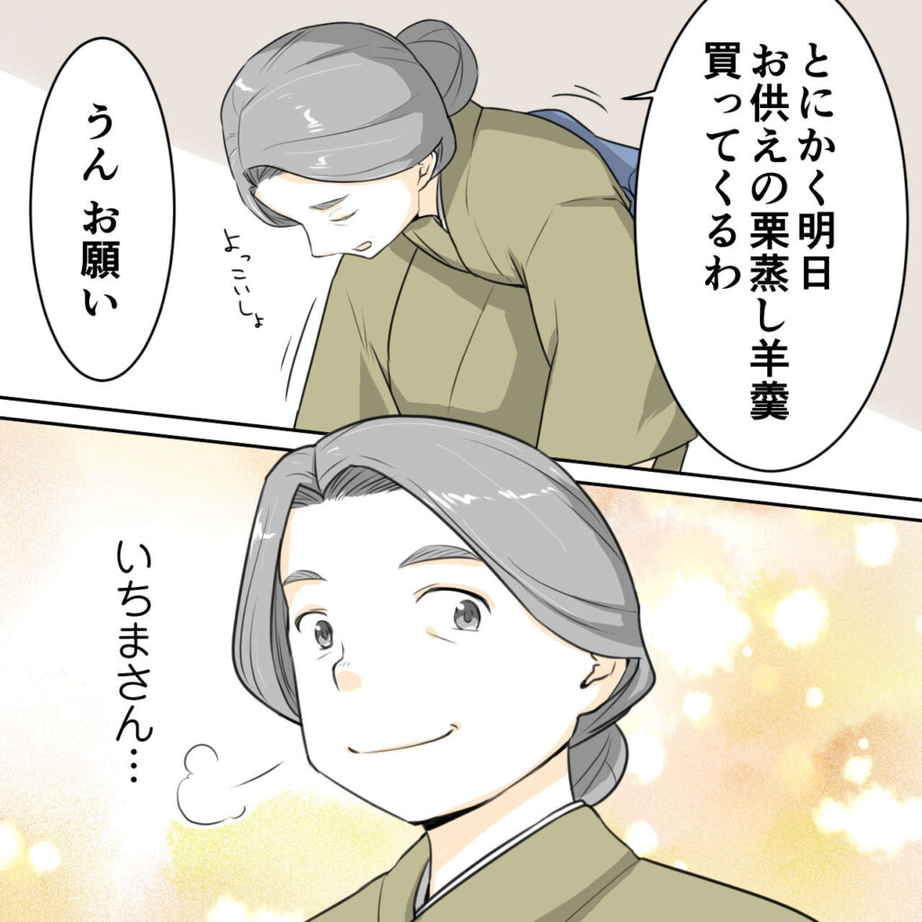 すると、「とにかく明日、お供えの栗蒸し羊羹買ってくるわ」そう言って立ち上がるお母さんに「うん。お願い」と言う私。