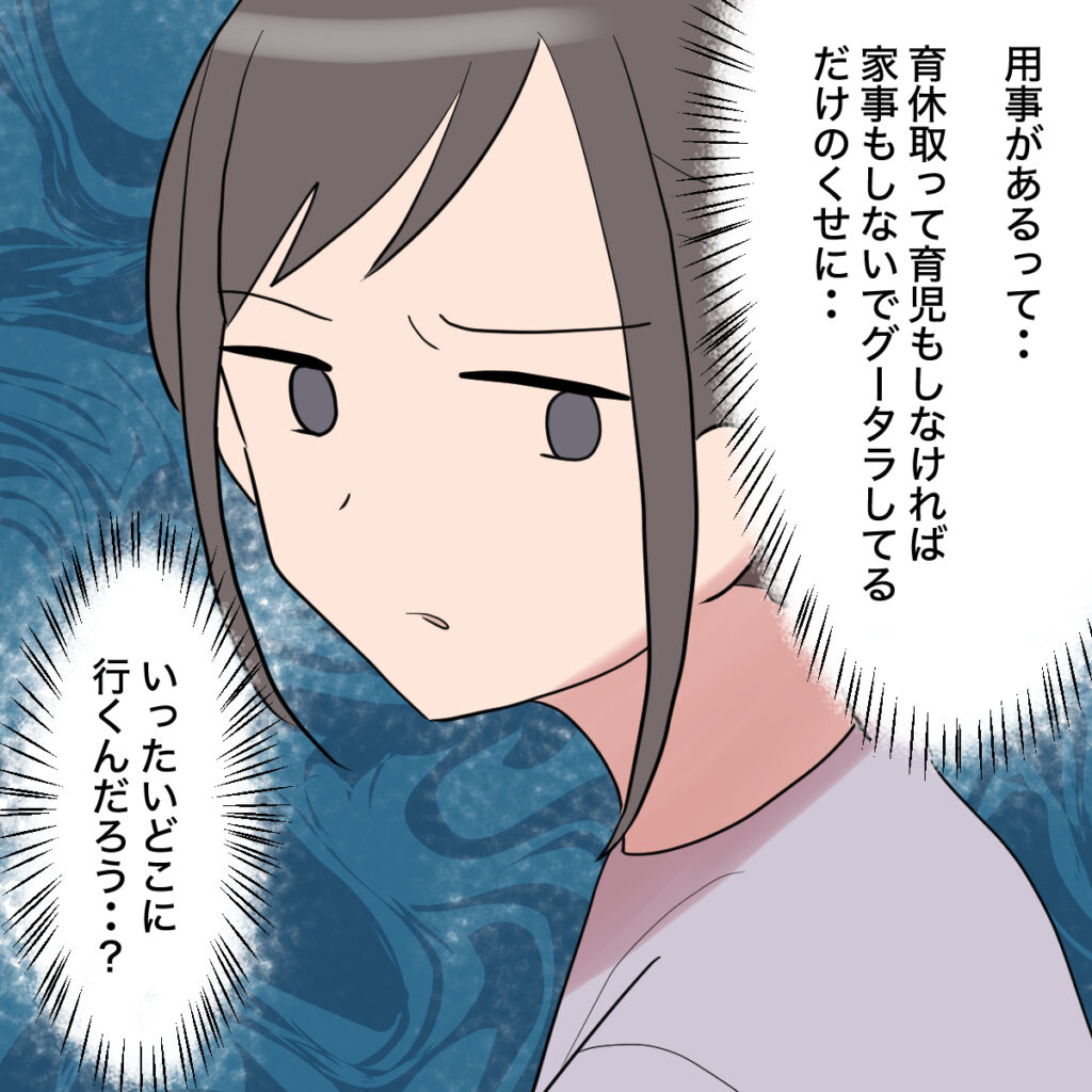 「用事があるって・・育休取って育児もしなければ、家事もしないでグータラしてるだけのくせに・・。一体どこに行くんだろう・・?」オサムの怪しい言動に、モヤモヤが止まりませんでした。