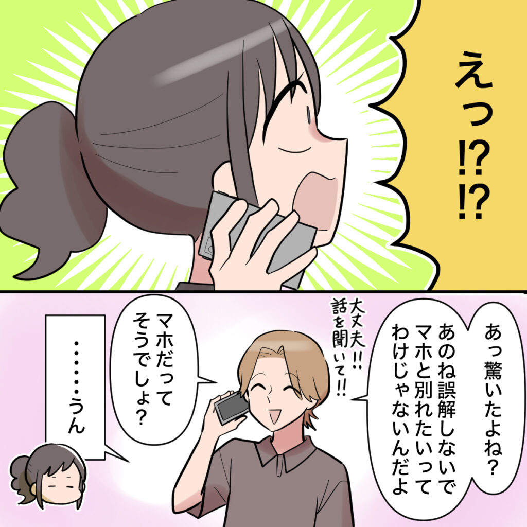 思わず「えっ!?!?」と驚いた声を出すと、「あっ驚いたよね。大丈夫!!話を聞いて。あのね誤解しないで。マホと別れたいってわけじゃないんだよ。マホだってそうでしょ?」そう言われて「・・うん」としか返事ができなかった私に、
