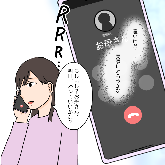 義両親と夫タケルの態度は、私を蔑ろにして自分たちの思い通りにならないと「気が利かない」「これだから大学院では」と見下したり嫌味ばかりで耐えられず、「夕飯の準備まだできてないの?」と怒られましたが私はマヒロを連れて家を出ました。勝手に家に泊まるって決めて、しかも私たちのベッドを使うなんてムリ。私は実家に帰ろうかなと思い母に電話をしました。