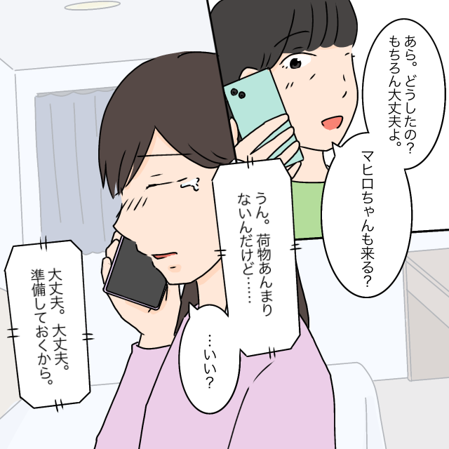いつもの明るい母の声。「もちろん大丈夫よ。マヒロちゃんも来る?」と聞かれ「うん。荷物あんまりないんだけど・・・いい?」言いながら涙が出てきてしまいました。母は泣いている私に気づいていたと思いますが何も聞かず、ただ「大丈夫大丈夫。準備しておくから」とだけ言ってくれました。