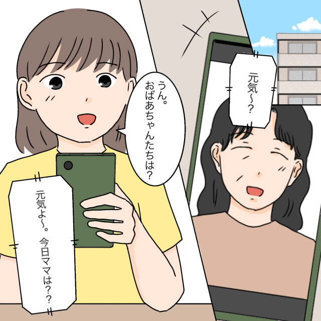 夫タケルとの話し合いの結果、私は義両親と会わなくてすむようになりましたが、マヒロは定期的に連絡を取り合っているようでした。この日も、マヒロはタケルのスマホを使って、義母とテレビ通話を楽しんでいます。