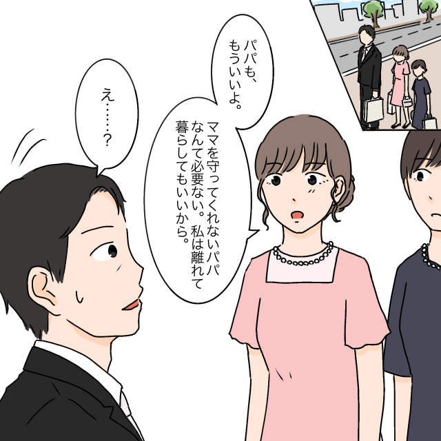 「パパももういいよ。ママを守ってくれないパパなんて必要ない。私は離れて暮らしてもいいから」マヒロにそう言われ「え・・?」と驚くタケル。