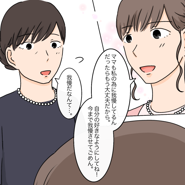 「ママも私の為に我慢してるんだったらもう大丈夫だから。自分の好きなようにしてね!今まで我慢させてごめん」マヒロの言葉に「我慢だなんて・・」と言った後、