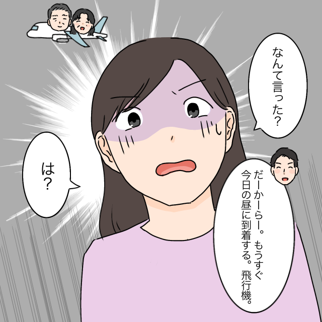 ひと言も相談なく、もう飛行機が到着するなんてひどいですよね。しかもモエさんが嫌がると分かっているからと言う理由で、呼んでしまえば了承せざるを得ないと思われているところが腹立たしいです。