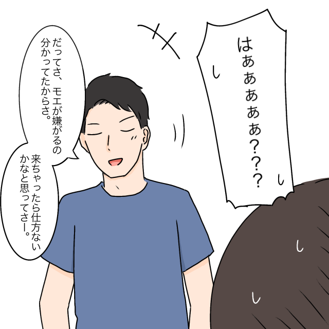 「はぁああ?」しか出てこない私に、タケルは勝ち誇ったように「だってさ、モエが嫌がるの分かってたからさ。来ちゃったら仕方ないかなと思ってさー。」と言いました。