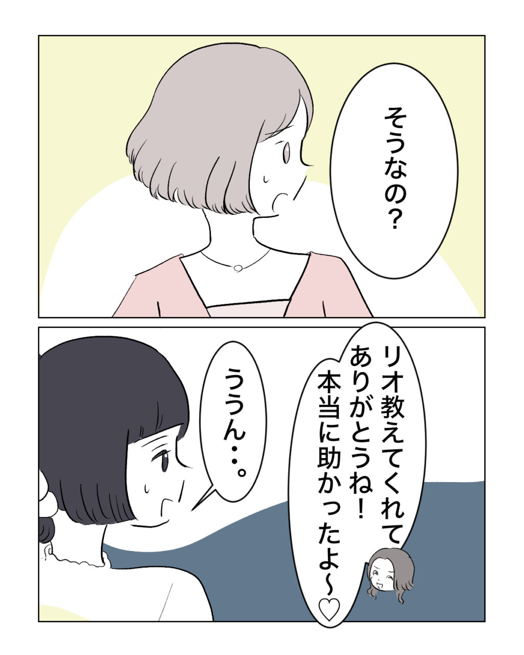 「そうなの?」ホノカさんが驚いて聞き返すと、「リオ教えてくれてありがとうね!本当に助かったよ~」と嬉しそうに言うルナさんに、リオさんは「ううん・・」としか答えられませんでした。