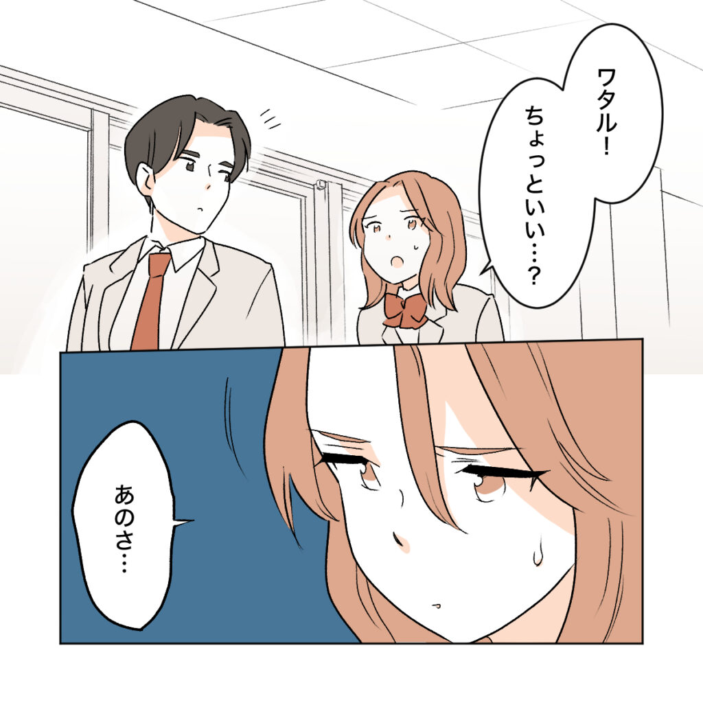 真面目な性格のワタルは、『カエデは誰にも知られたくない』という私の言葉を信じて自分からは何も言いません。「ん・・・?」とワタルに言われたカエデは、「あ、いや、」と話そうか悩んでから「最近一緒に変えれてないな~って思って!」と、やはり言うのをやめた様子です。「今日一緒に帰る?」とワタル。この前私が誘った時は「部室に寄って帰るから」と断られたのに。
