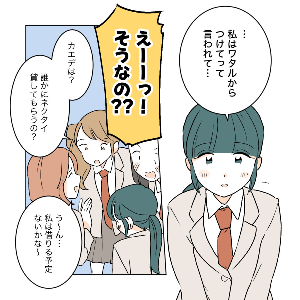 そんな2人の様子を、実はワタルはそばで静かに見ていたのでした。いつかの帰り道、カエデに自分のネクタイを貸す約束をしていたことを思い出しながら。