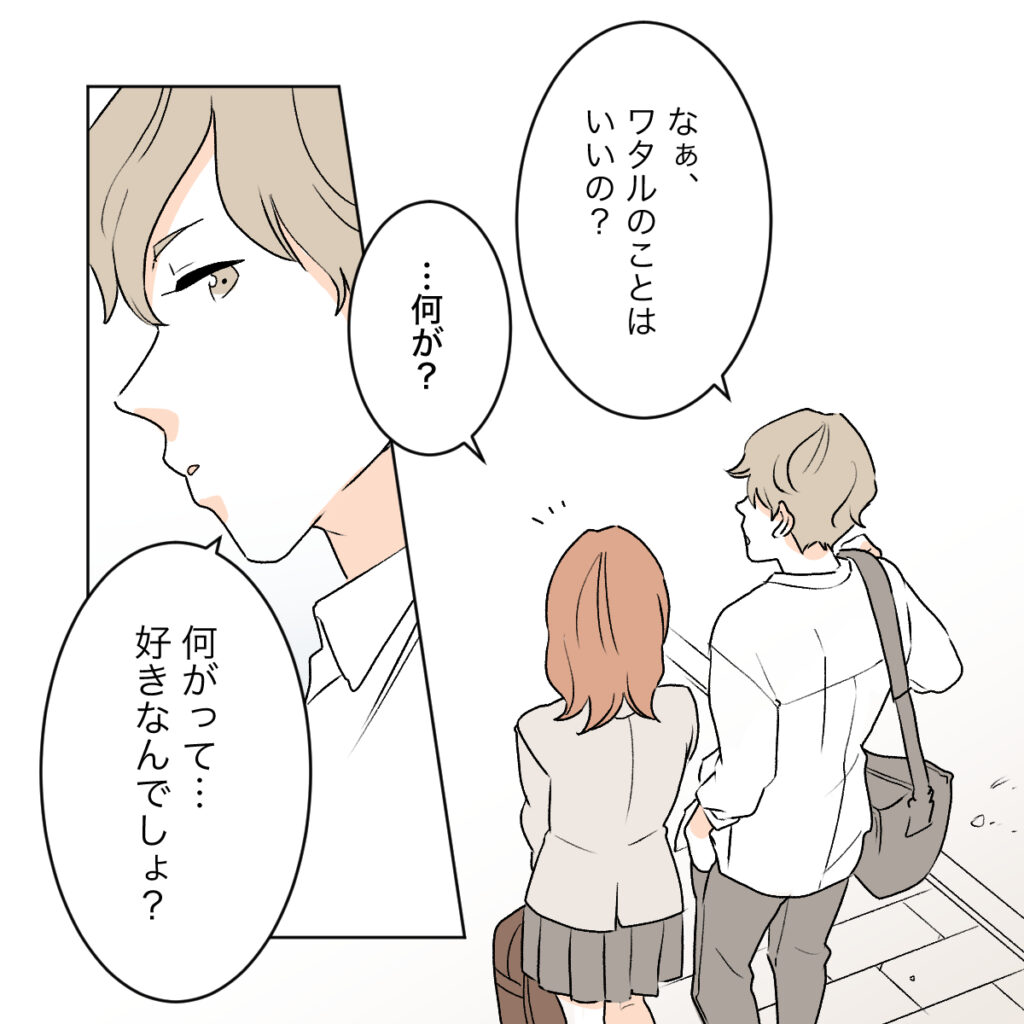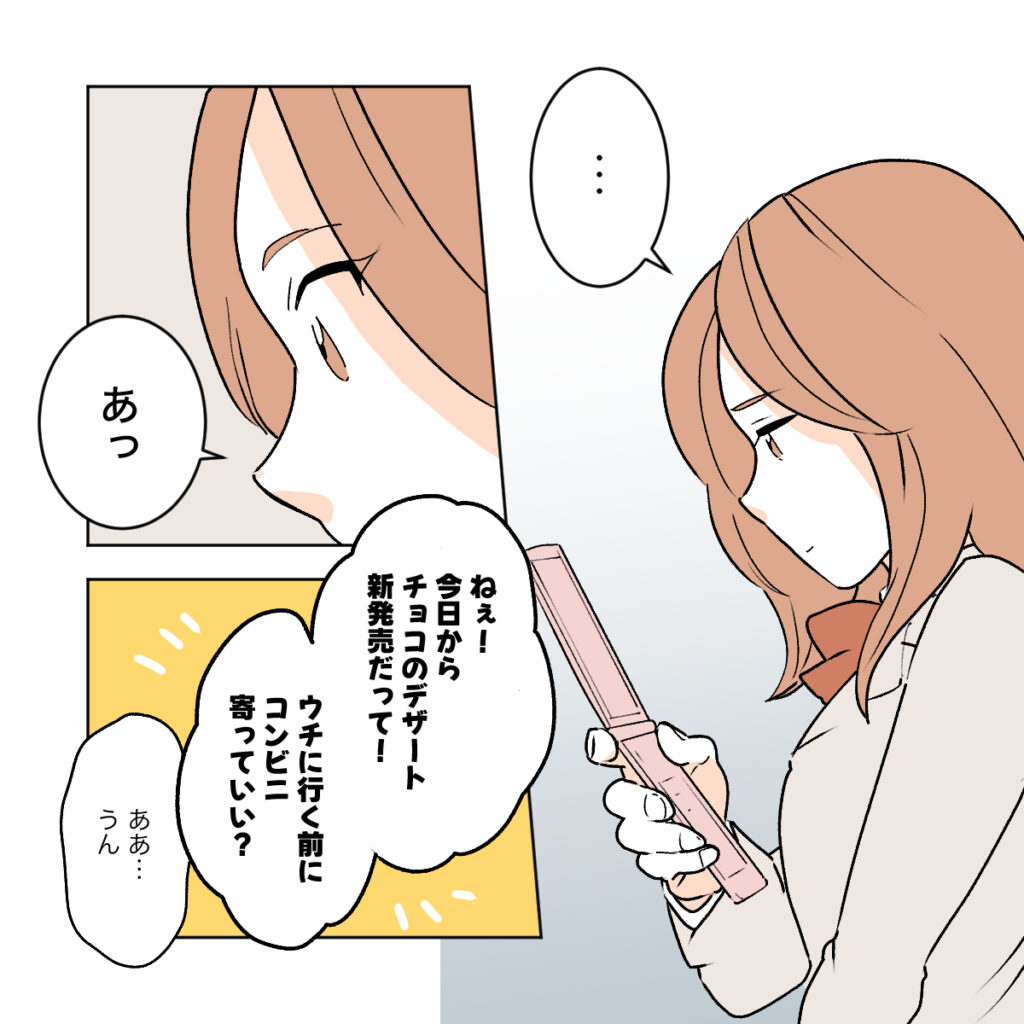 「好きなんでしょ?」というショウマの質問には答えず、カエデは「ねぇ!今日からチョコのデザート新発売だって!ウチに行く前にコンビニよっていい?」と話を逸らしました。