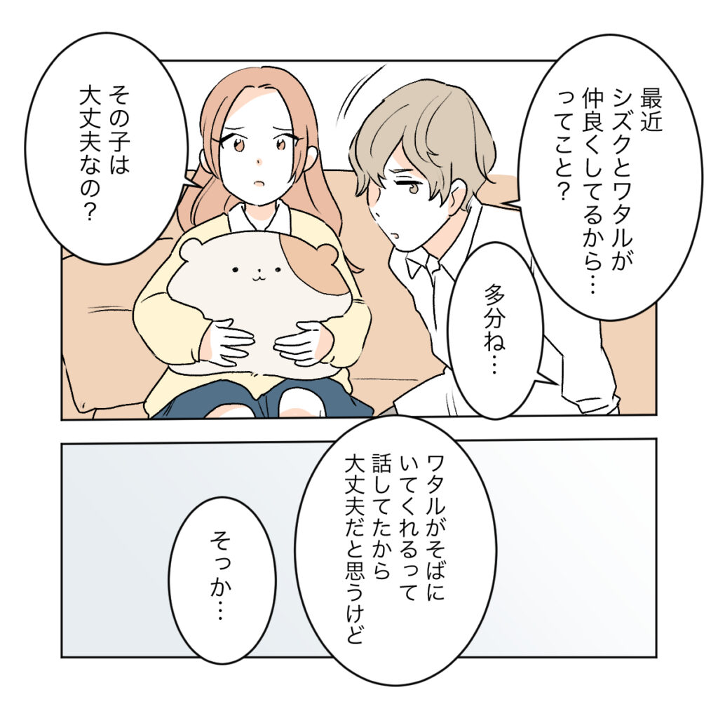 「最近シズクとワタルが仲良くしてるから・・・ってこと?」手紙の主は、ワタルと一緒にいる人に嫌がらせをしていると思われたので、「多分ね」とカエデは答えました。「その子は大丈夫なの?」と心配するサクラに、「ワタルがそばにいてくれるって話してたから大丈夫だと思うけど」と、シズクの嘘を信じているカエデは言いました。