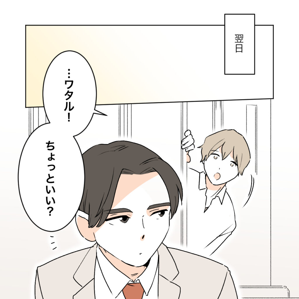 少し沈黙をおいて「なんで?」と即答しないワタル。「ん?最近一緒にいるから、さ。」と、ただの興味を装って答えたショウマでしたが、「なぁ・・・それってけん制?」といぶかし気な顔でショウマを見るワタルに思わず「・・・は?」と驚いたショウマです。