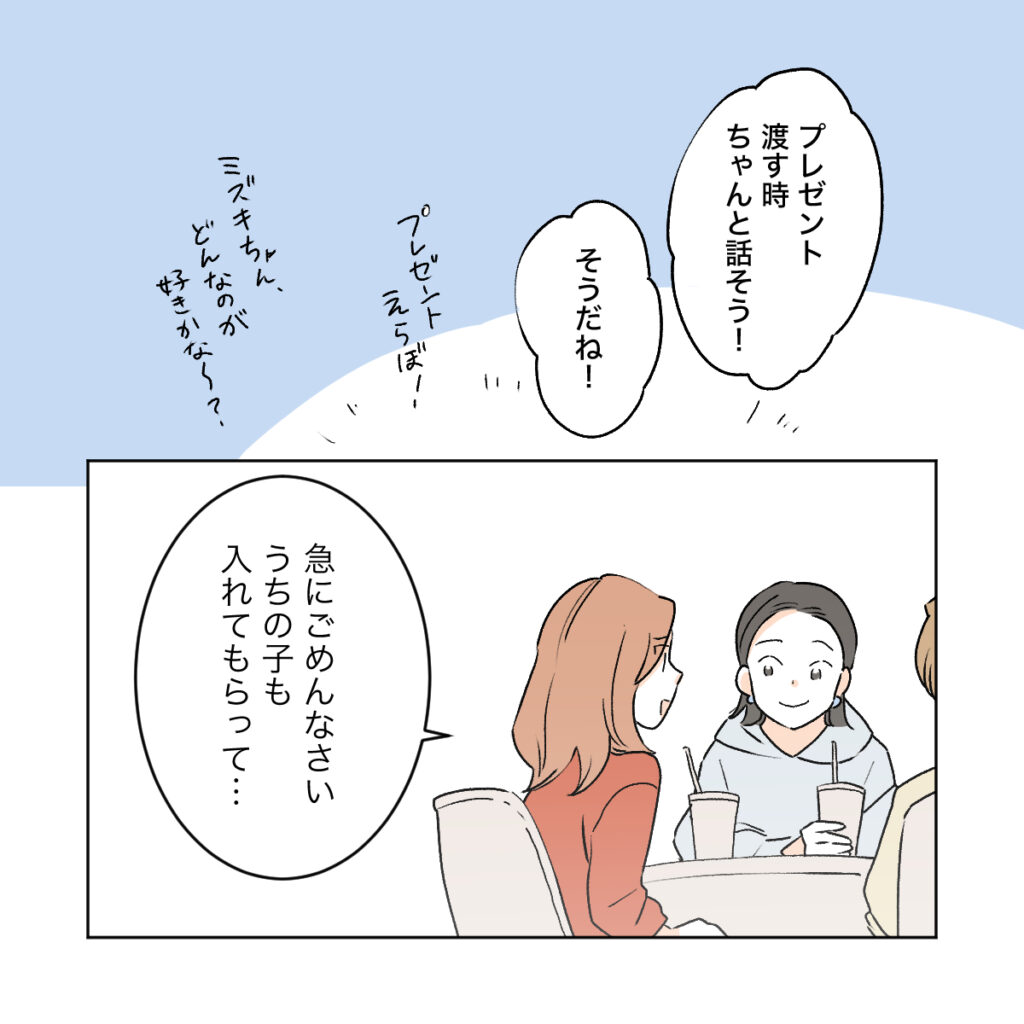 子どもたちは、プレゼントを渡すときにミズキにちゃんと話そうと納得し合いました。