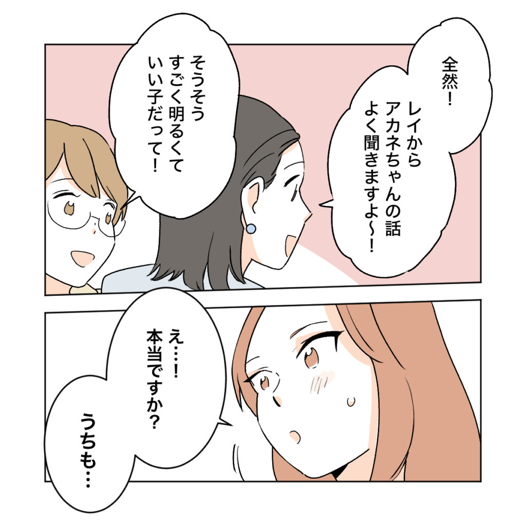 フレンドリーなママ友達から、口々にアカネちゃんの良いところを褒められて嬉しくなりました。そしてすぐに打ち解けて楽しくおしゃべりを始めました。
