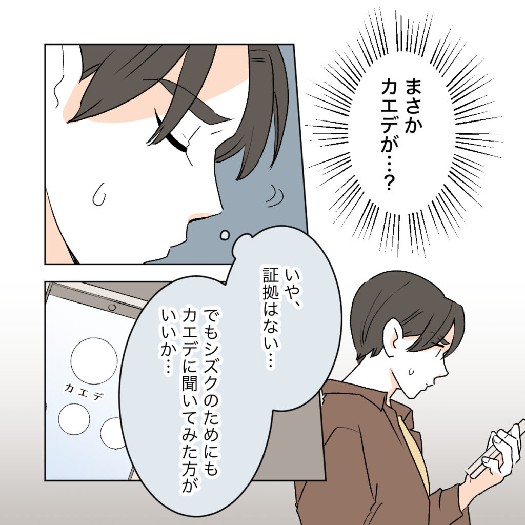 まさかカエデが?と、考えたくないことがワタルの脳裏に浮かびました。でも証拠はないので、シズクのためにもカエデに直接聞いてみた方がいいかどうか、ワタルは悩みました。