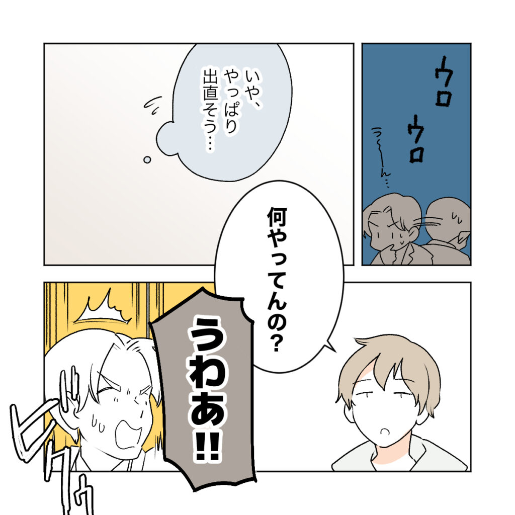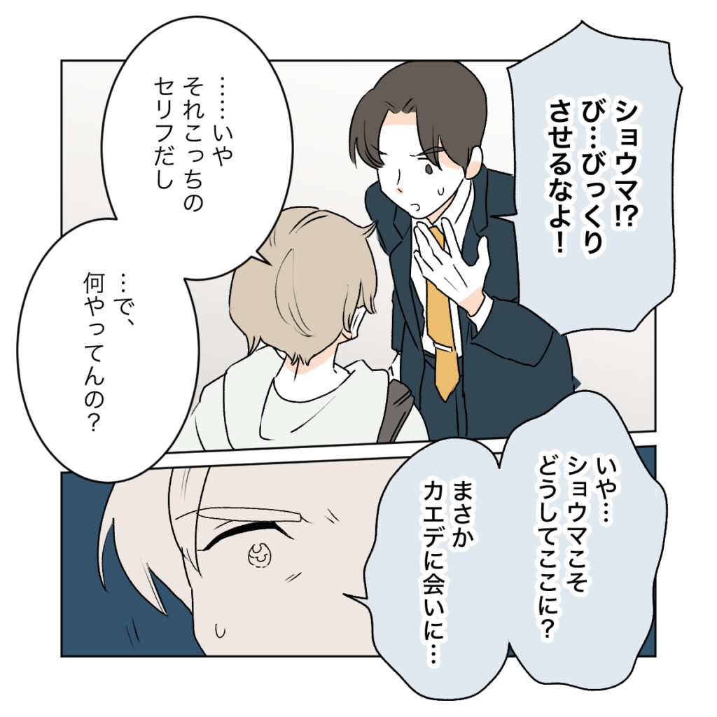 家の前で出直そうかどうしようかと迷ってウロウロしていると、帰宅したショウマが現われました。「何やってんの?」声をかけられ心底驚いたワタル。