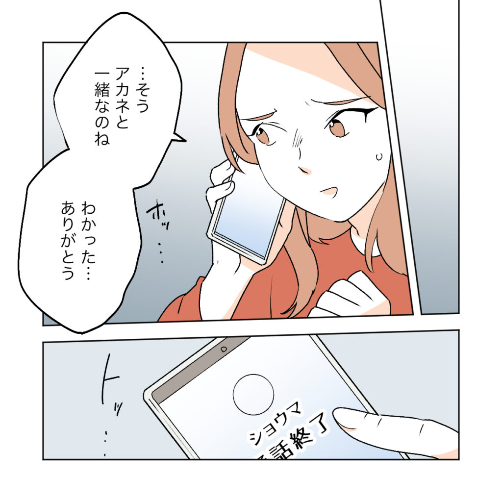 「・・・そう、アカネと一緒なのね」お店に着いたショウマから、アカネを見つけたと連絡を受けたカエデ。高校時代のサクラの事件のこともあり、自分の子に何かあったらどうしようとひどく心配していましたが、アカネが無事だと知りホッと胸を撫で下ろしました。