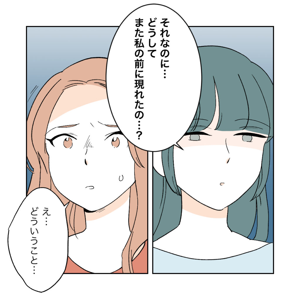 「・・・それなのに、どうしてまた私の前に現れたの?」冷たい表情で話すシズク。言っている意味が分からなかったカエデは「どういうこと・・・」と聞き返しました。