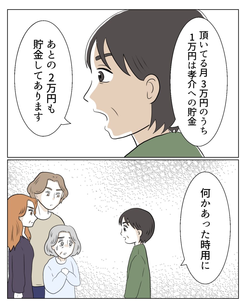 「毎月いただいている3万円のうち、1万円は孝介の将来のために、残りの2万円はお義母さんに何かあった時の備えとして貯金しています」そう伝えると、義母は驚いた表情で私を見ました。
