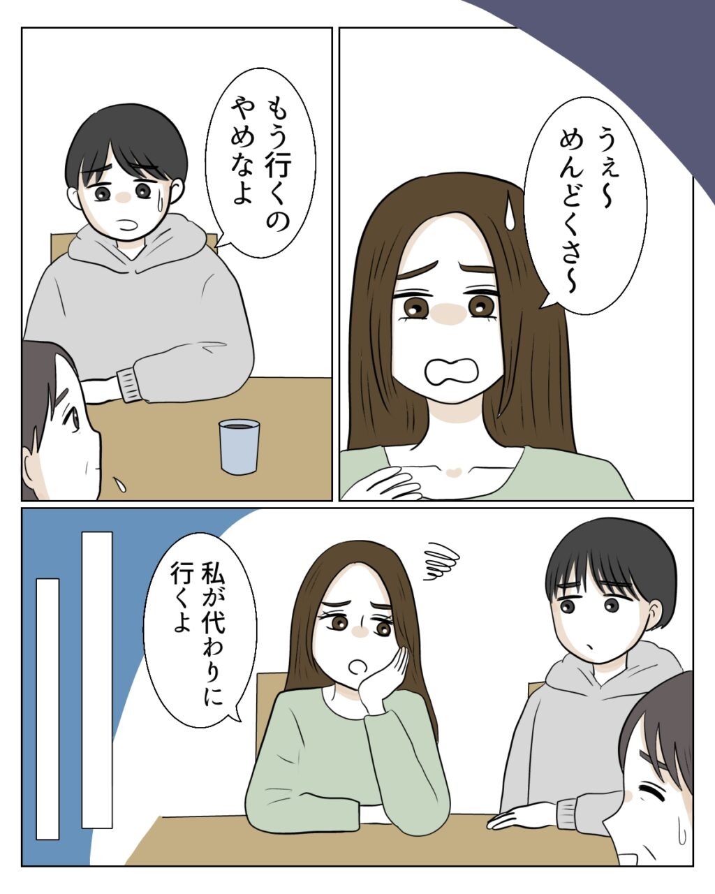その話を聞いた真矢は、すぐに状況が思い浮かんだのか「うぇ~めんどくさ~」と一言。孝介も「もう行くのやめなよ」と心配してくれました。義母は、何かあるごとに私のせいにして、自分に問題があったときには年のせいにして弱い立場を主張します。日頃からそれを見ている真矢と孝介は呆れるばかり。私が義母に強く意見を言えないことを知っている真矢は「私が代わりに行くよ」と心強い言葉を口にしてくれました。