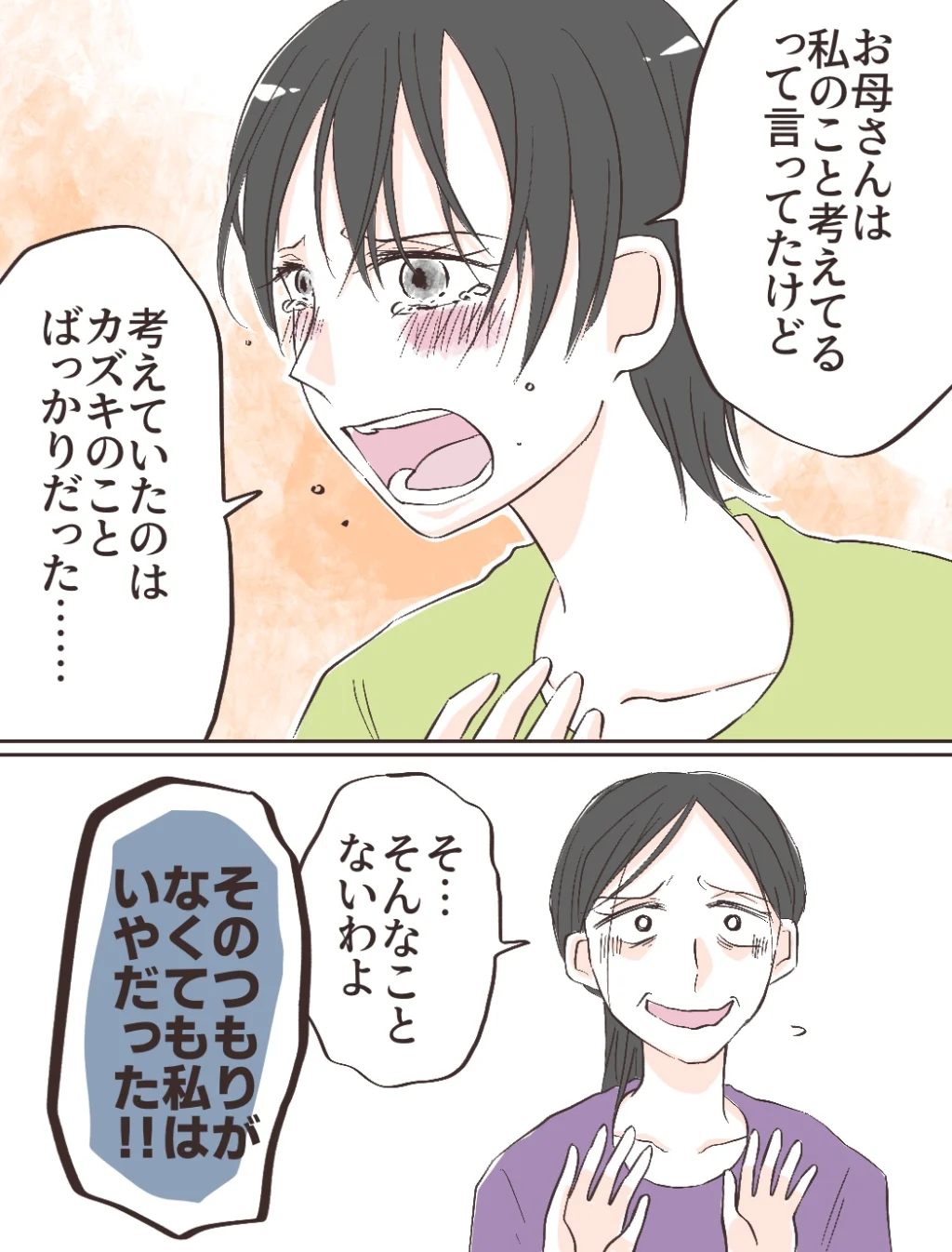 母は、私のことを考えていると話していましたが、考えていたのはいつもカズキのことばかり。でも、ずっと我慢していました。なぜなら、父が帰ってこなくて母が困っているのを知っていたからです。母の言う通りにしていれば、いつか私のことを見てくれるかもと思っていましたが、実際はそうじゃなかった。母は、私のことなんて一度も考えてくれていませんでした。