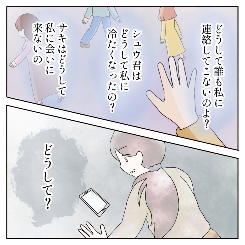 一方実家では、お母さんがひとり、スマホ画面をじっと見つめていました。「どうして誰も私に連絡してこないのよ」「シュウ君はどうして私に冷たくなったの?」「サキはどうして私に会いに来ないの」そんな疑問が浮かんではサキさんにメッセージするのが日課になっていくお母さんです。
