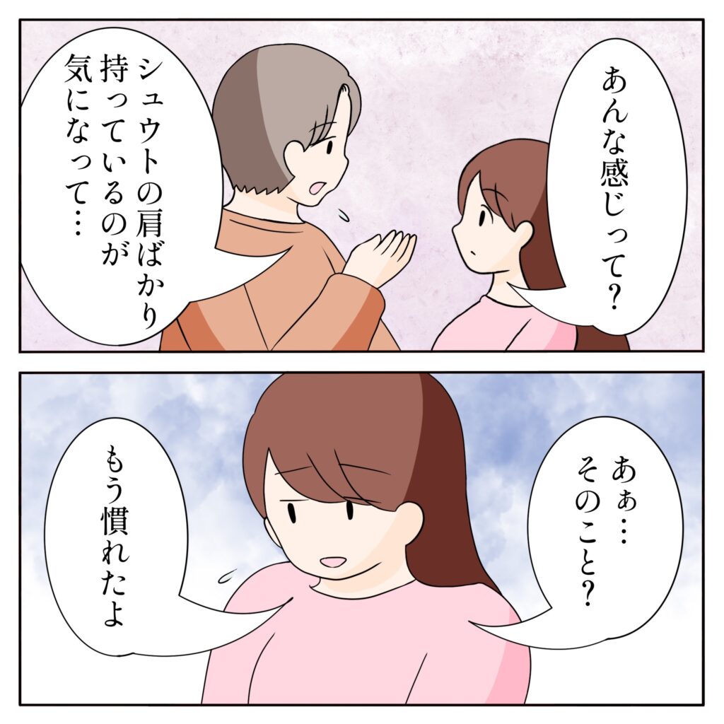 父の質問は意外でした。「あんな感じって?」と聞くと、「シュウトの肩ばかり持っているのが気になって・・・」父にも分かっていたんだ。「あぁそのこと?もう慣れたよ」と言って私は少し目をそらしました。