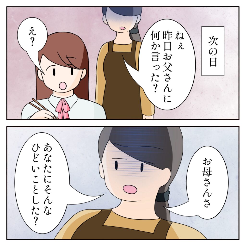 なぜそんなことを聞かれるのか分からず、動揺して何も言えずにいると、母はさらに「なんだか私だけ悪者みたいに言われちゃって気分悪かったわ。」と私を責めてきたのです。私は呆然として言葉が出てきませんでした。