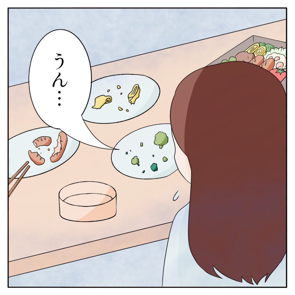 キッチンにはシュウトのためにキレイにたっぷり詰めたお弁当と、お皿にチラホラ残ったおかず。でも私は「うん・・・」と言うしかありませんでした。