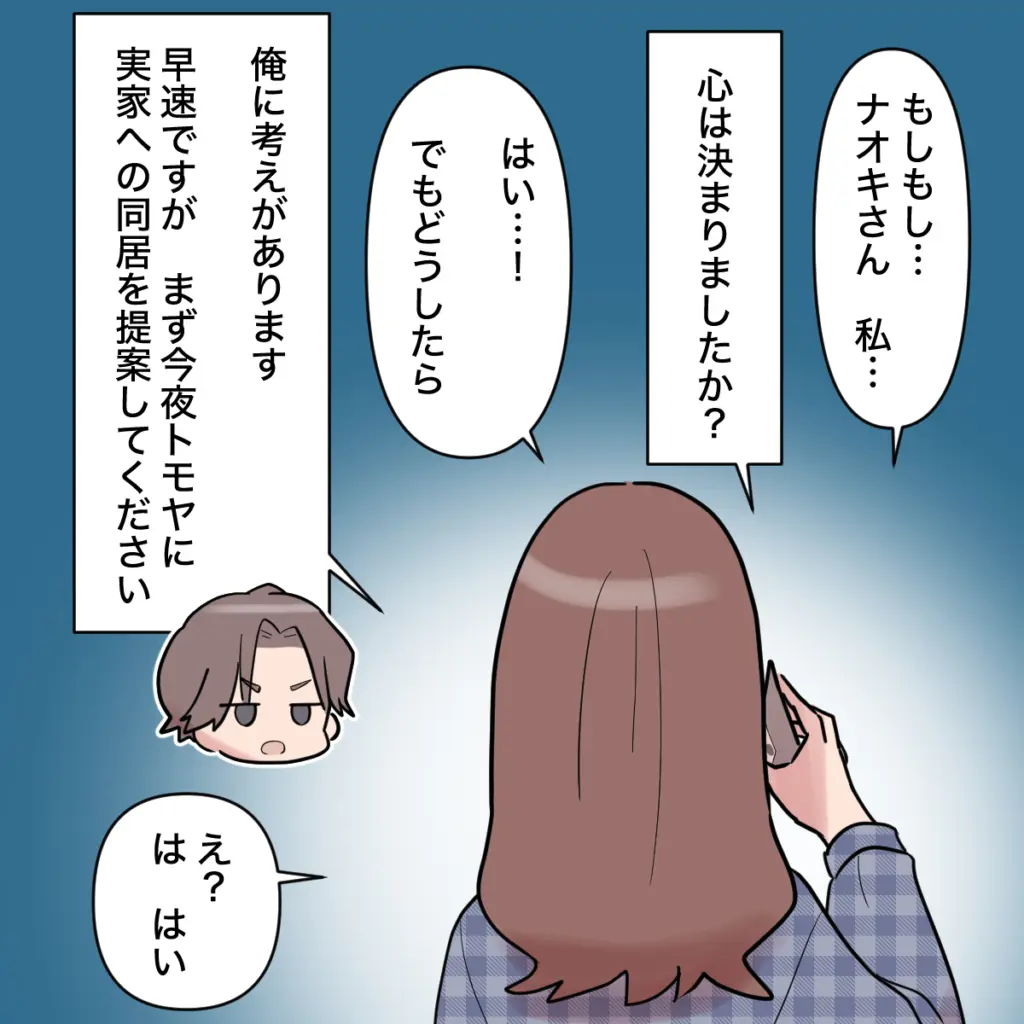 ナオキさんはまず、私に義実家への同居を提案するよう指示してくれました。いい感じの理由も教えてくれたおかげで、すんなり承諾を得ることに成功。そして翌日、計画の全貌を教えてもらうために、私はナオキさんに指定されたカフェへと向かったのでした。