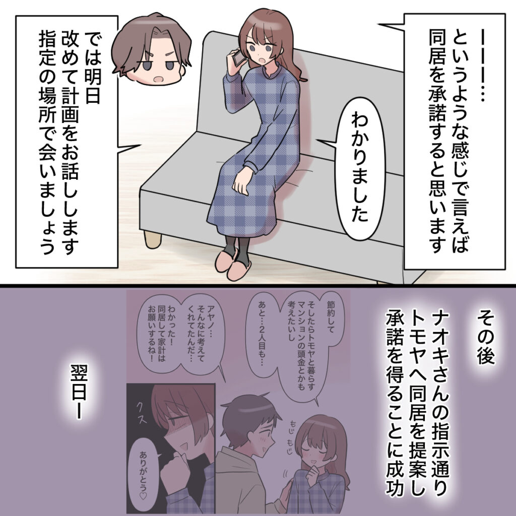 私はすぐにナオキさんに電話をかけました。「心は決まりましたか?」そう問いかけるナオキさんに、「はい!」と力強く返事をします。するとナオキさんは「俺に考えがありますー・・・」と、以前から練っていたであろう復讐計画を静かに語り始めました。