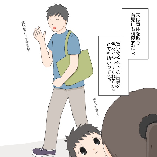 夫は育休を取って育児にも積極的。買い物や外での用事を色々とやってくれるからとても助かっていました。