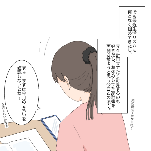 「これまで夫に任せてたからね~。まぁまずは今月の支払いを確認しないと・・9万くらいかなぁ」そう呟いて、