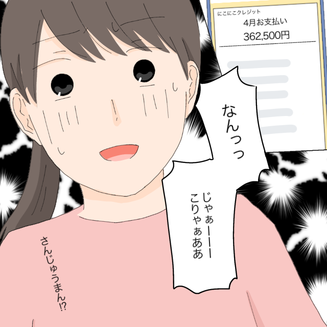 子どもが生まれ、しばらくの間育児に専念していた明里さん。育休を取り、育児にも積極的なたかしさんに任せっきりだった家計簿を、そろそろ再開しようと通帳やらを引っ張り出してきて確認することに。まずは今月の支払いから確認を、とスマホを開くと、36万円超の請求額に愕然!9万円位かと思っていた明里さん、その4倍もの請求額と知れば、たかしさんをたたき起こすのも当然ですよね。