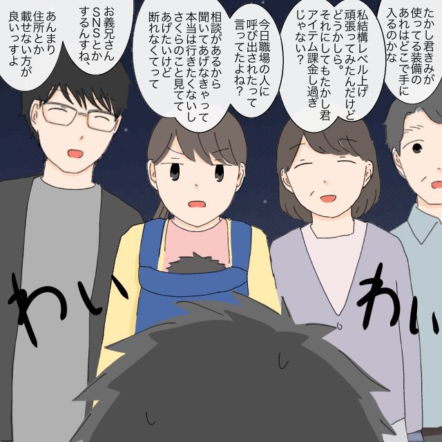 そして家族全員でゲームのことを夫に質問したり話したりして圧を掛けます。