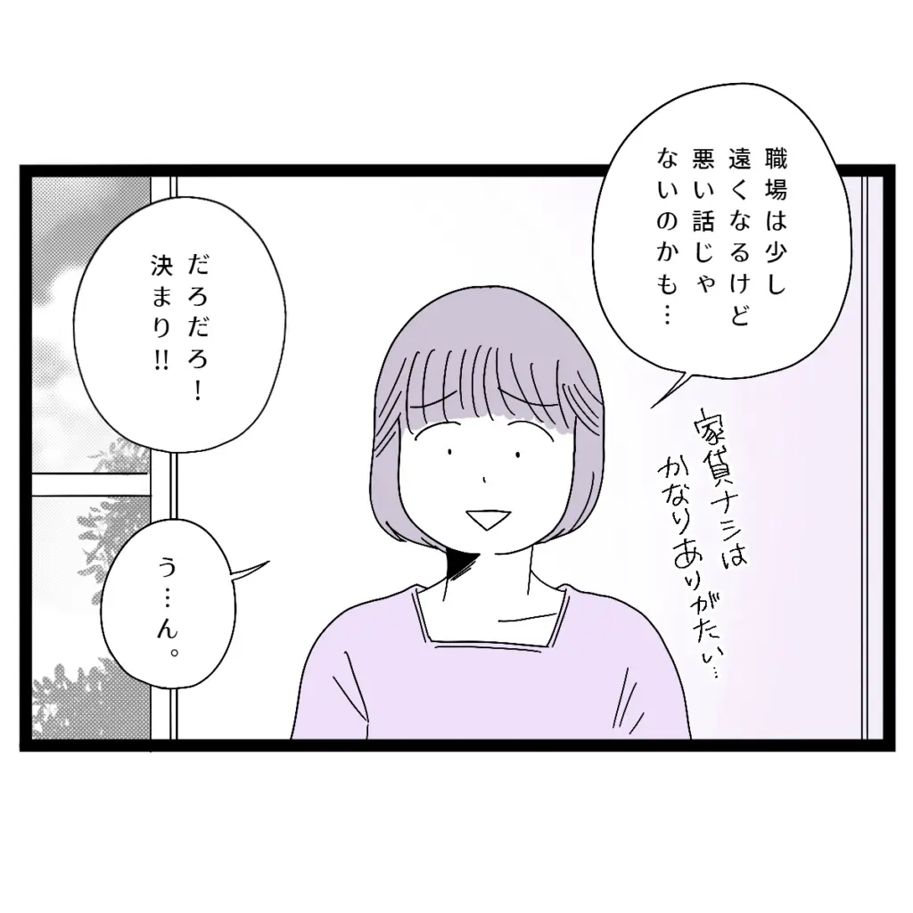 久しぶりに義実家へ帰ってきた美月さん。最近結婚した義兄が住む予定の新居を見学していると、突然義母から「この家に住まない?」と提案されます。理由を聞くと、この家に住むはずだった義兄が単身赴任で急遽県外へ行くことになったそう。せっかく建てたのに誰も住まないのはもったいないから・・・義母に頭を下げられ、美月さんは戸惑います。その夜、夫に相談すると「家賃がかからない分、貯金に回せるしいい話じゃない?」と前向きな反応。職場は少し遠くなるけど、家賃がかからないのは大きい・・・話し合いの末、美月さんたちは3年間だけ義兄の家に住むことに決めたのでした。確かに、3年間家賃ゼロで住めるのはありがたい話ですよね。