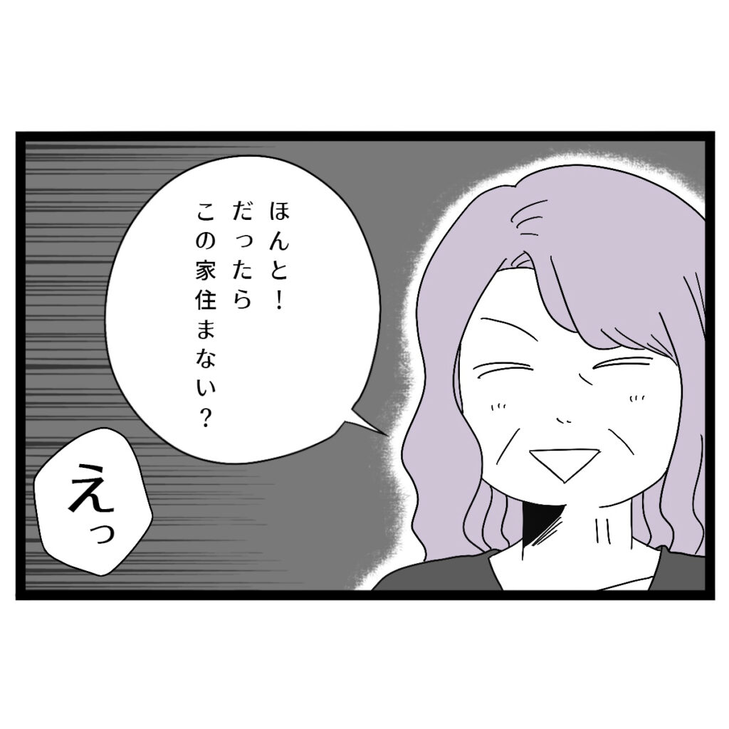 私の感想を聞いた義母は、パッと笑顔になり「ほんと!?だったらこの家に住まない?」と聞いてきました。突然すぎる提案に、私は思わず「えっ」と驚きます。