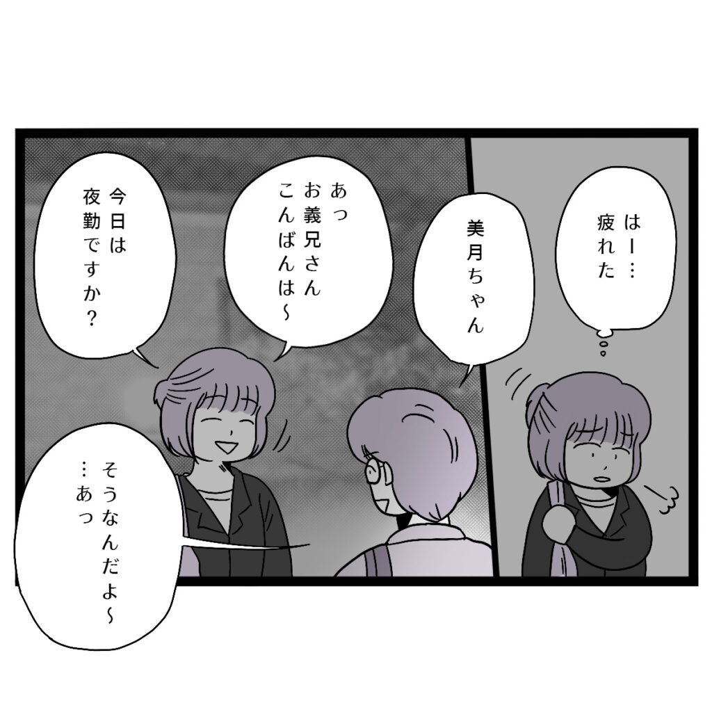 ある日仕事から「はー・・疲れた」と帰って来ると、「美月ちゃん」と声をかけられました。「あっ、お義兄さん。今日は夜勤ですか?」美月さんが返事をすると、「そうなんだよ~・・あっ」と何か思いついたよう。