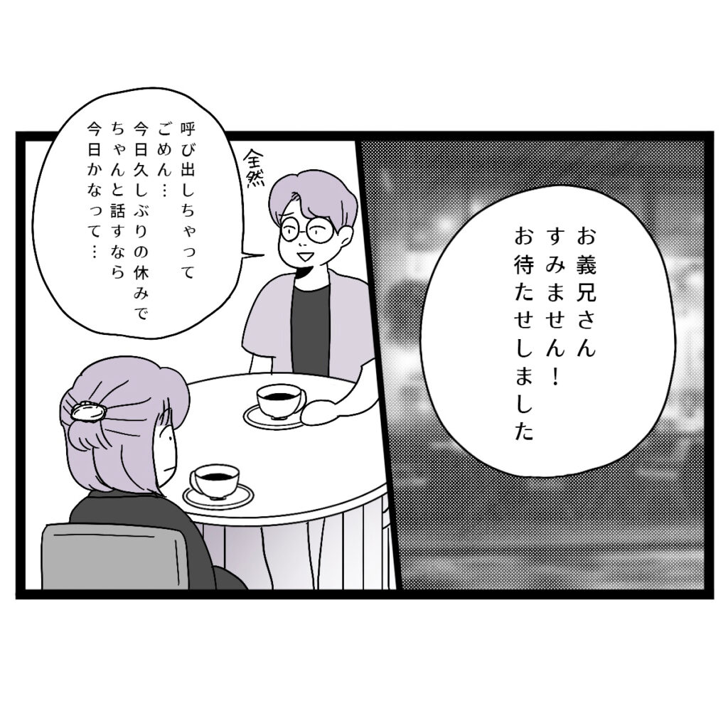 お義兄さんすみません!お待たせしました」と約束の影に行くと、「全然。呼び出しちゃってごめん・・今日久しぶりお休みで、ちゃんと話すなら今日かなって・・」とお義兄さんが切り出しました。