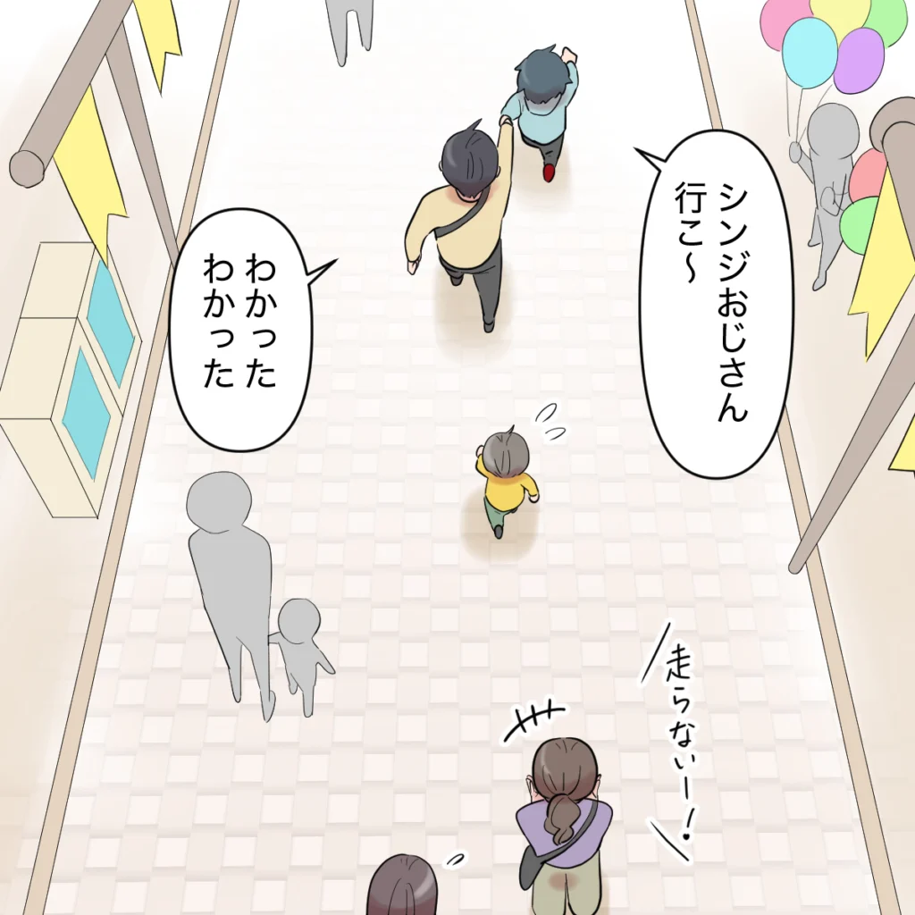 遊園地に到着するやいなや、タイガ君はシンジの手を引いて「シンジおじさん行こ~」と走り出してしまいました。ケンシンは置いて行かれまいと、小さな歩幅で必死に2人の後を追います。その健気な背中を見て、私は胸がぎゅっと締め付けられました。