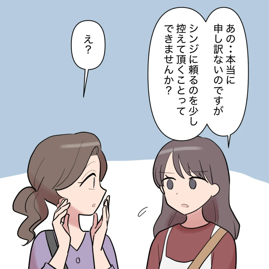 私はカオルさんに、「あの・・・本当に申し訳ないのですが、シンジに頼るのを少し控えていただくことってできませんか?」と真剣にお願いしました。するとカオルさんは、「え?」と驚いたような顔を浮かべます。