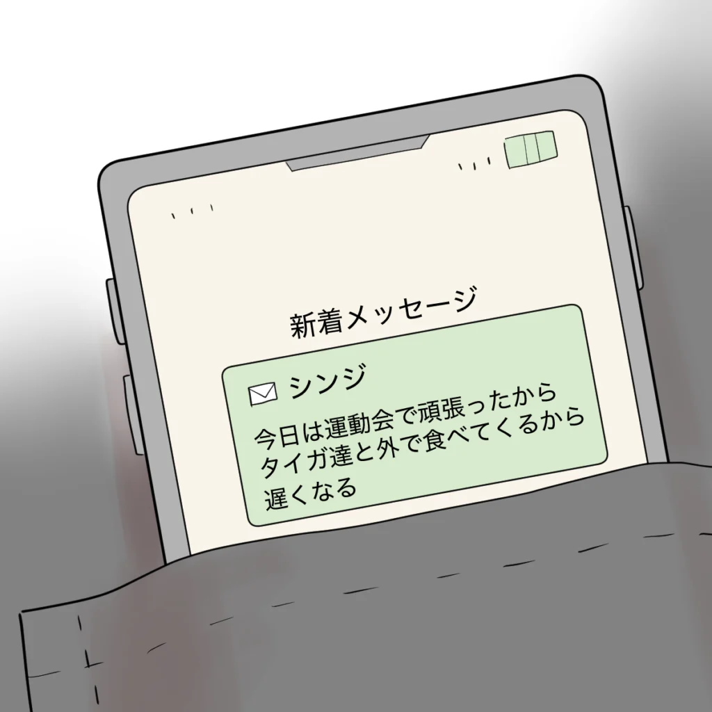 このとき、私のスマホにはシンジから『今日は運動会で頑張ったからタイガ達と外で食べてくるから遅くなる』とメッセージが届いていました。帰宅後、このメッセージに気付いた私は愕然とし、ケンシンに何と言って説明しようかと頭を悩ませました。そして、同時にシンジへの怒りが沸々と湧きあがって来ました。この人はどこまでケンシンの気持ちを踏みにじれば気が済むのでしょうか。
