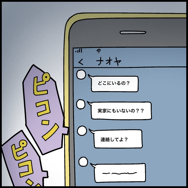 「どこにいるの?」「実感にもいないの?」「連絡してよ?」その後も次々に送られて来るメッセージはすべてナオヤからでした。