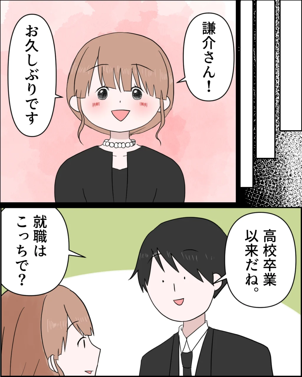 話は法事の日にさかのぼります。「謙介さん!お久しぶりです」とあかりちゃんに挨拶された謙介は、「高校卒業以来だね。就職はこっちで?」と優しく声をかけました。