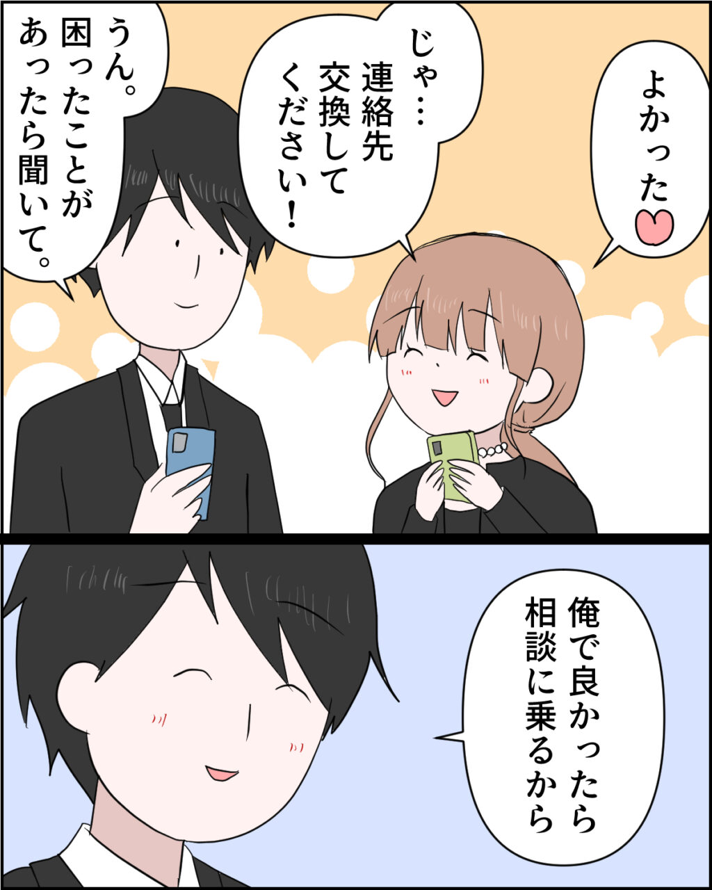 「よかった!じゃ・・連絡先交換してください!」スマホ片手にそう言われ、「うん。困ったことがあったら聞いて。俺で良かったら相談に乗るから」と連絡先を交換することになった経緯を話した謙介は、