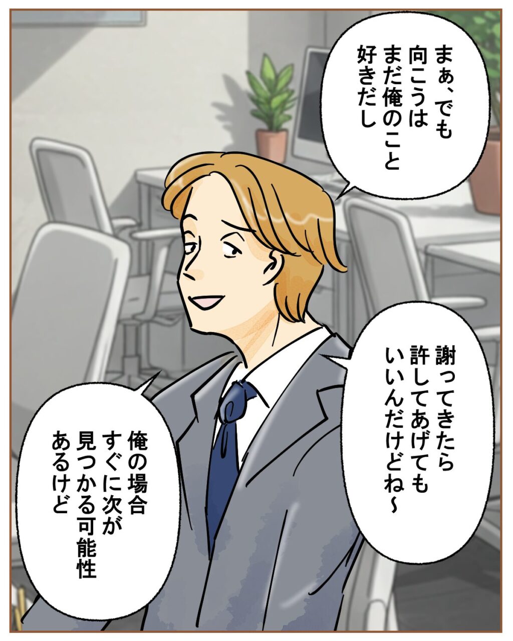 「まぁ、でも向こうはまだ俺のこと好きだし、謝ってきたら、許してあげてもいいんだけどね~。俺の場合、すぐに次が見つかる可能性あるけど」と言葉を続けるツカサさん。