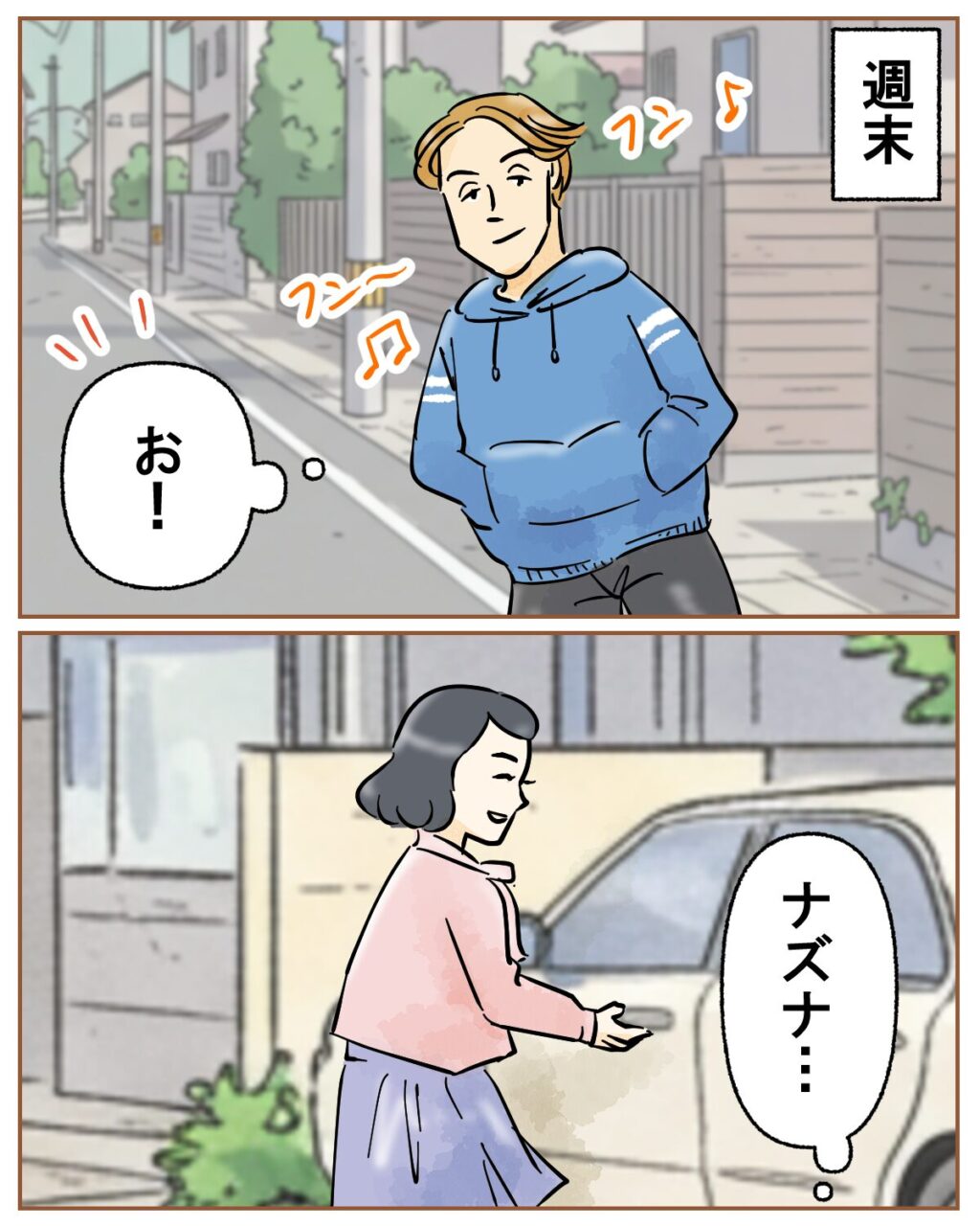 「お!」ちょうど車に乗り込むナズナさんを見つけ「ナズナ・・」と呟くと、