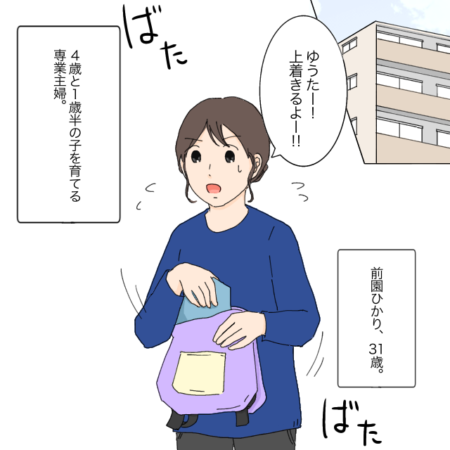 私はひかり。4歳のゆうたと1歳半のみずきの育児で毎日バタバタです。特に朝は幼稚園へゆうたを連れて行くまでが本当に大変です。どうして子どもっていつも出掛ける時になると手がかかることをし始めるのか。